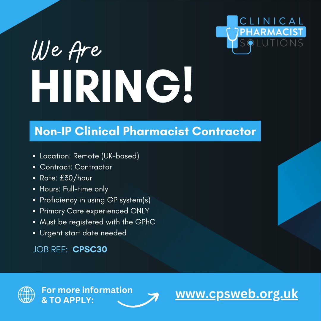 - If you have any questions regarding this position, please email recruitment@clinicalpharmacistsolutions.co.uk