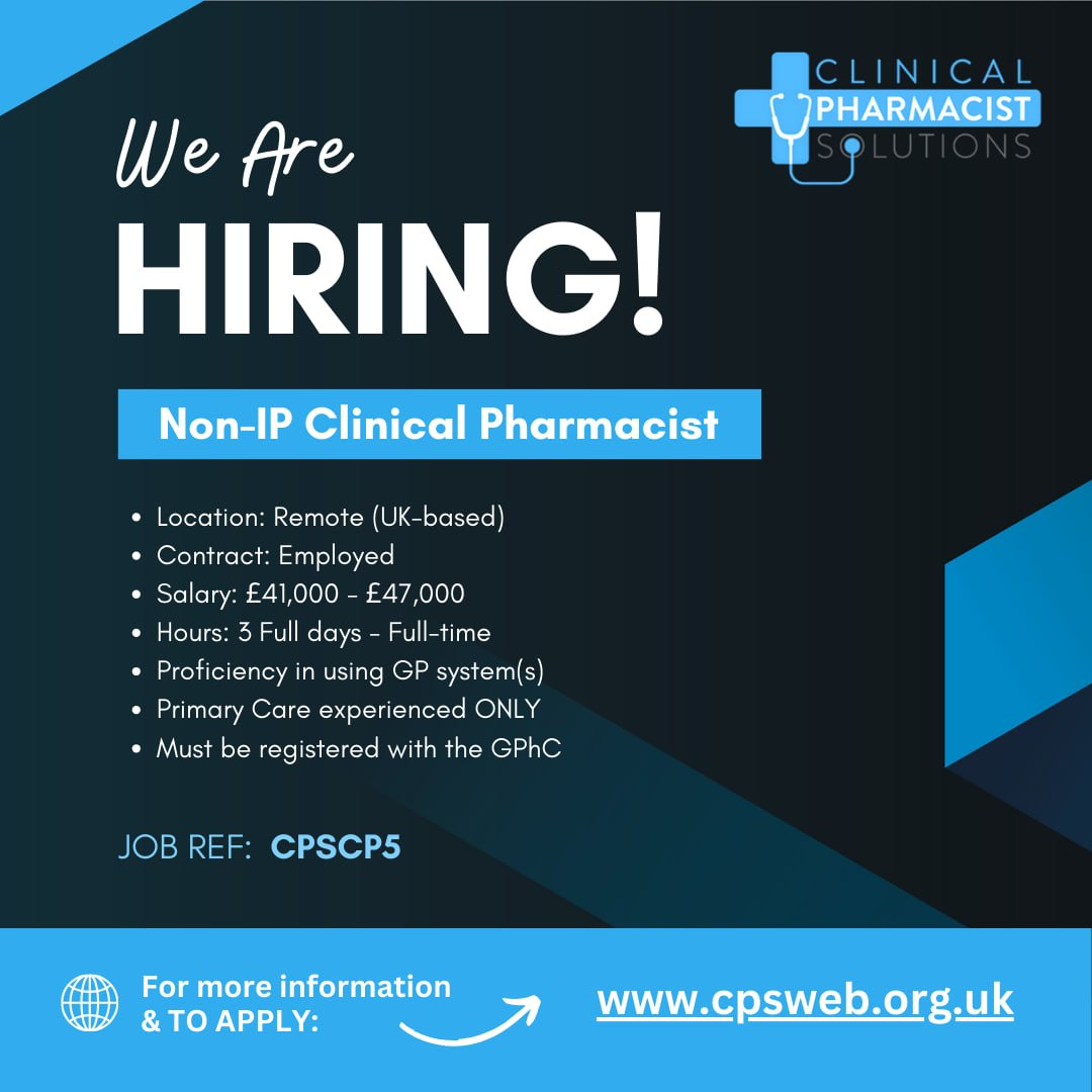 - The Pharmacist will be working as a part of our fantastic team of experienced Clinical Pharmacists and will have the full support of the team.