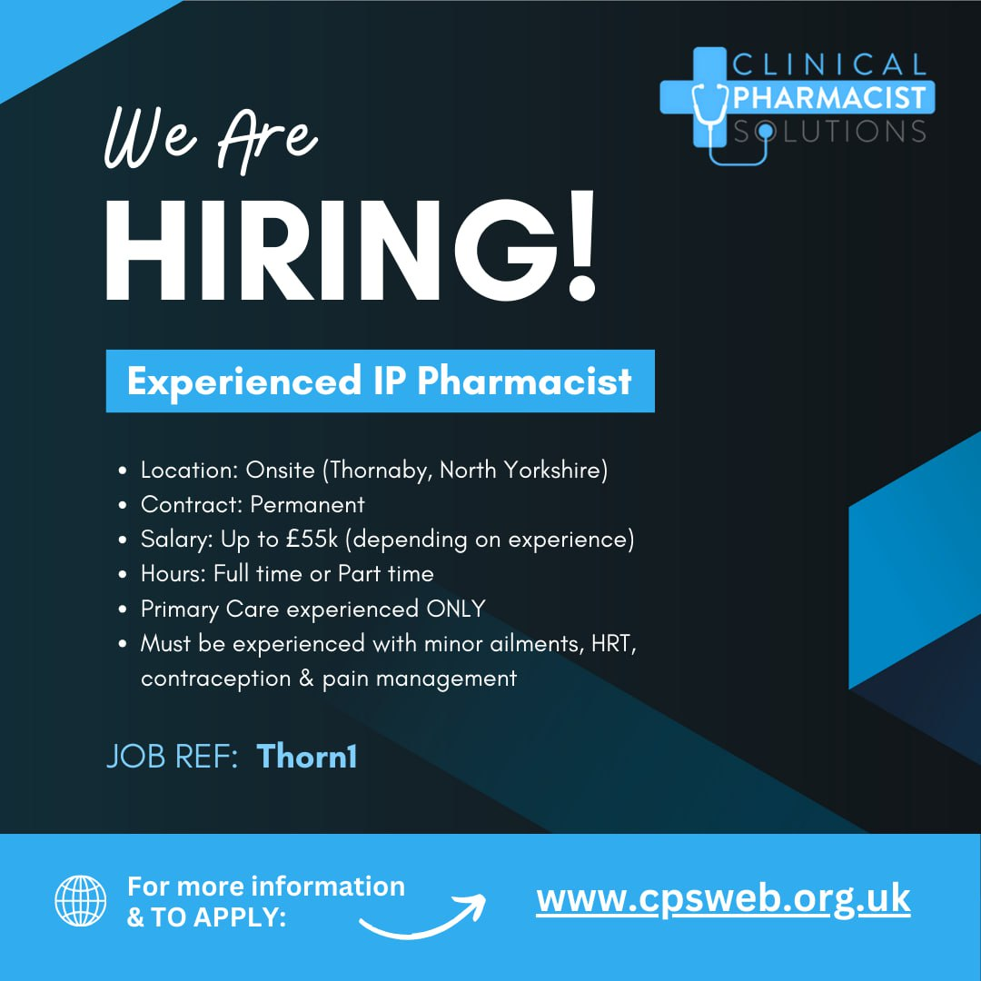 We are seeking an Experienced IP Pharmacist to join a well-established GP practice team in Thornaby, North Yorkshire. This is a permanent role with flexibility for full-time or part-time hours, offering a competitive salary of up to £55,000 (DOE).